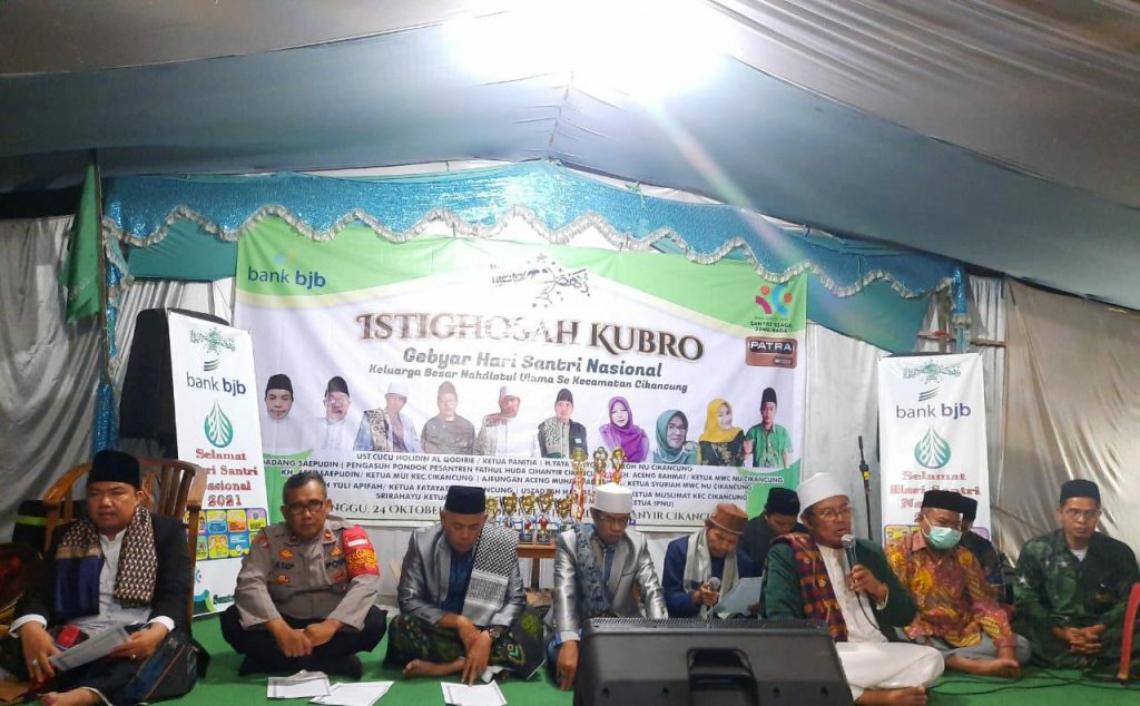 Kanit Samapta Ipda Asep Dadan Polsek Cikancung Mewakili Kapolsek Cikancung Iptu Carsono,SH Polresta Bandung Hadiri Peringatan Hari Santri Nasional Tahun 2021 di Ponpes Fathul Huda dengan Giat Istigosah Qubro